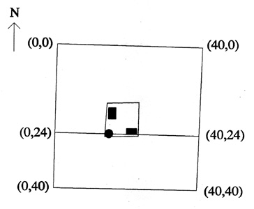 To test the effectiveness of the algorithm, my adviser and I constructed a test site. We buried three empty 55 gallon drums in a pit and carefully measured the positions and dimensions of the drums and the location of the pit walls (Figure 1). The pit was dug in sandy alluvial material with disseminated clays and black magnetite sands present. Two of the drums were metal and one was plastic. Later that year, we returned to the site to survey the area using GPR. The test site was examined using a 41 by 41 grid of stations with a 0.30 meter separation between stations and a 0.61 meter offset between Tx and Rx (Figure 2).