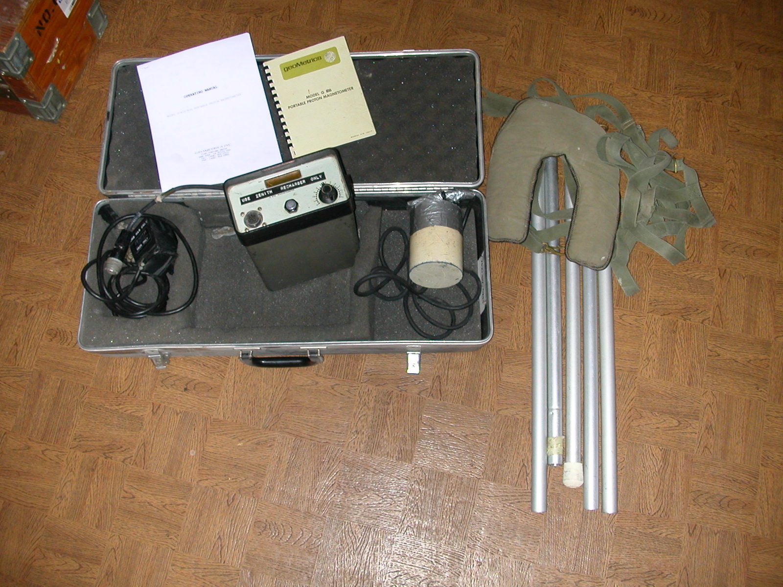 Geometrics G-826 proton precession magnetometer. Instrument has digital display but no storage capabilities. I have held the instrument next to a proton magnetometer tester. The tester has five settings where you dial in varying magnetic fields from 25,000 to 66,666 gammas (nT). The unit needs to be dialed into within about 6,000 gammas of the true value but is accurate to 1 gamma. $2,000.00