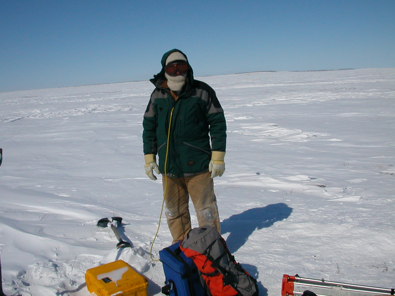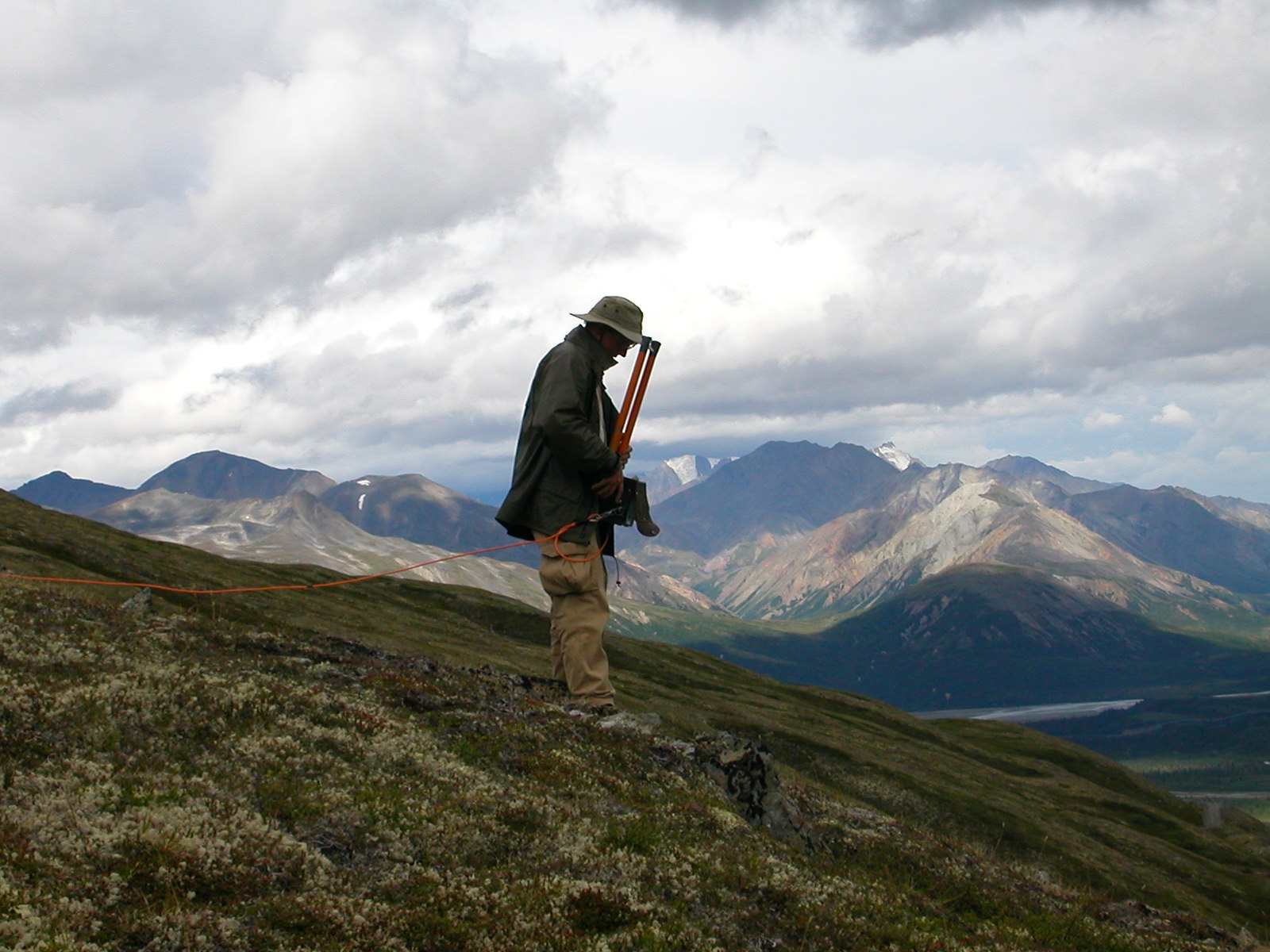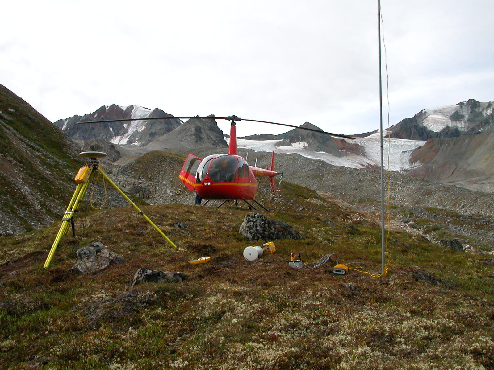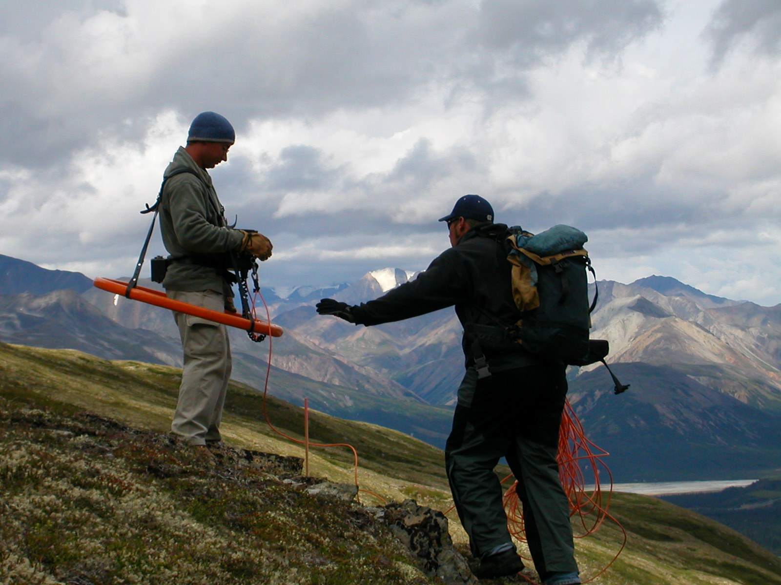 HLEM (horizontal loop electromagnetic) survey in interior Alaska. I used my Trimble GPS system with the RTK option to rapidly establish a centimeter level accuracy grid prior to beginning the HLEM survey. The quality of EM data is highly dependent upon the accuracy of the chaining of the grid.