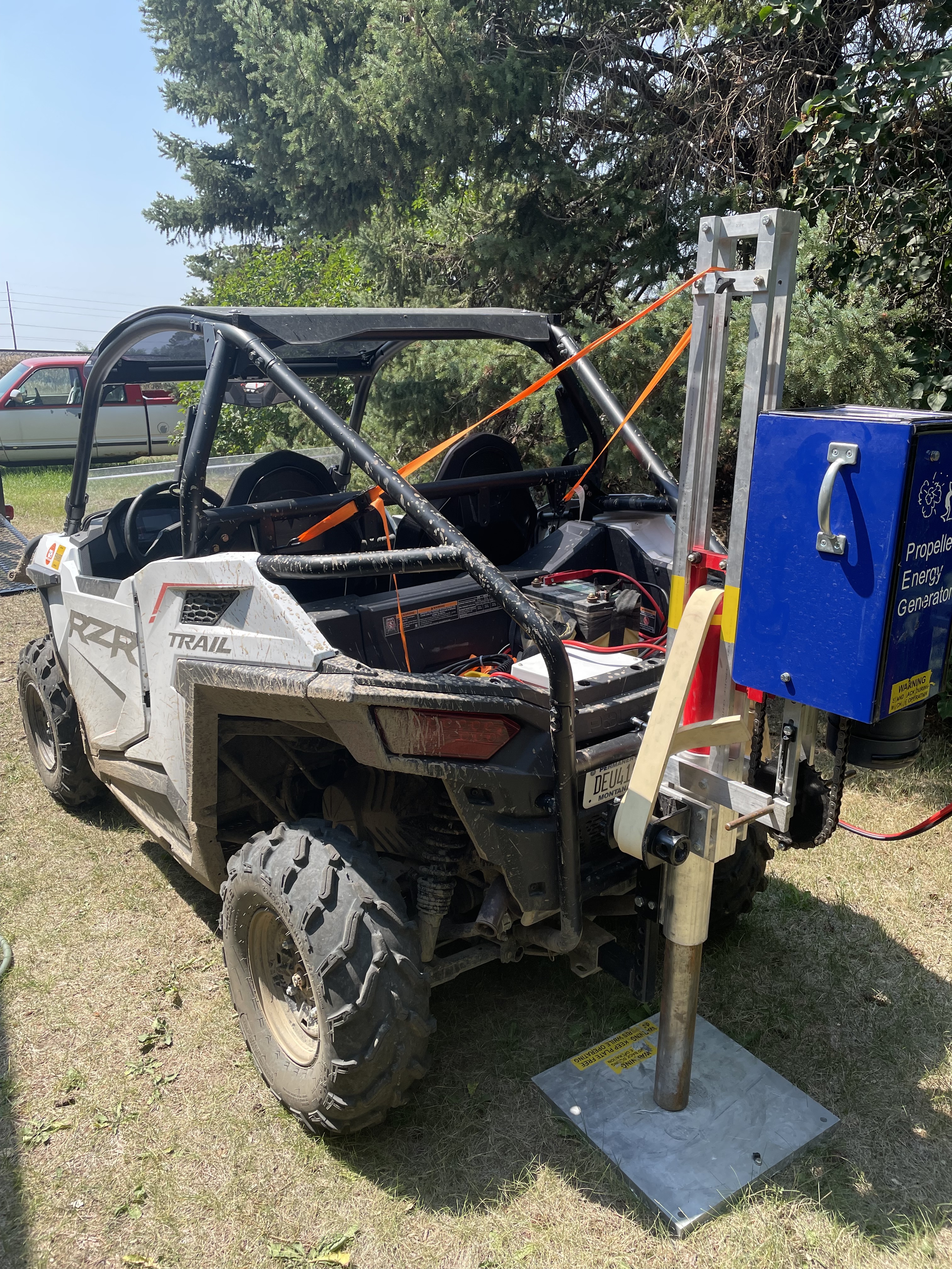 40 kg seismic weight drop mounted on a RZR Trail for access to remote locations.