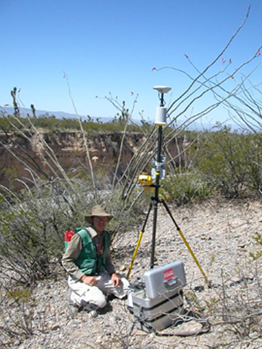 A gravity/GPS survey in Zacatecas, Mexico. The GPS base station was placed on a rancher's roof so it would not be disturbed by cattle.