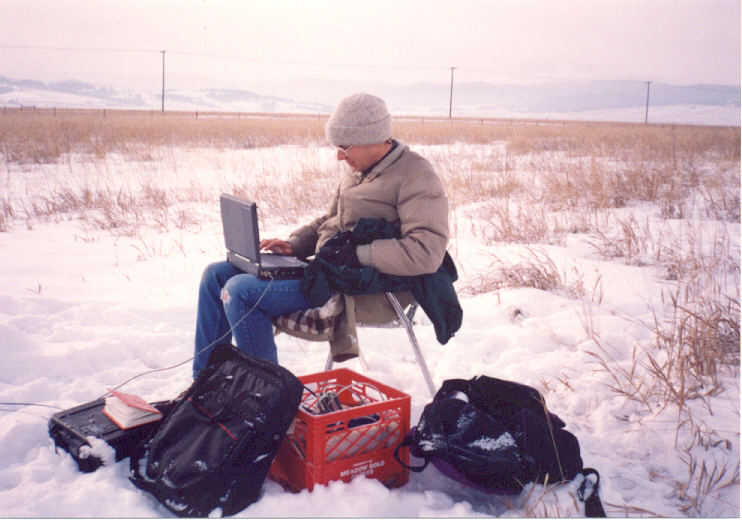 Here I am leveling a Lacoste and Romberg gravity meter for a detailed survey on a project in Michigan.