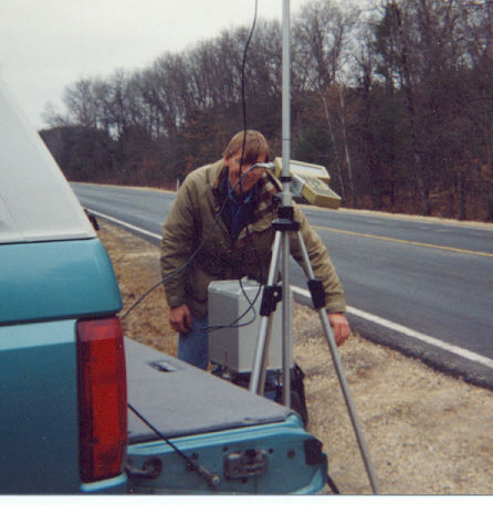 This picture was taken while doing a regional gravity survey in Wisconsin. The gravimeter is manufactured by Scintrex. The position is being obtained using a Leica GPS unit.